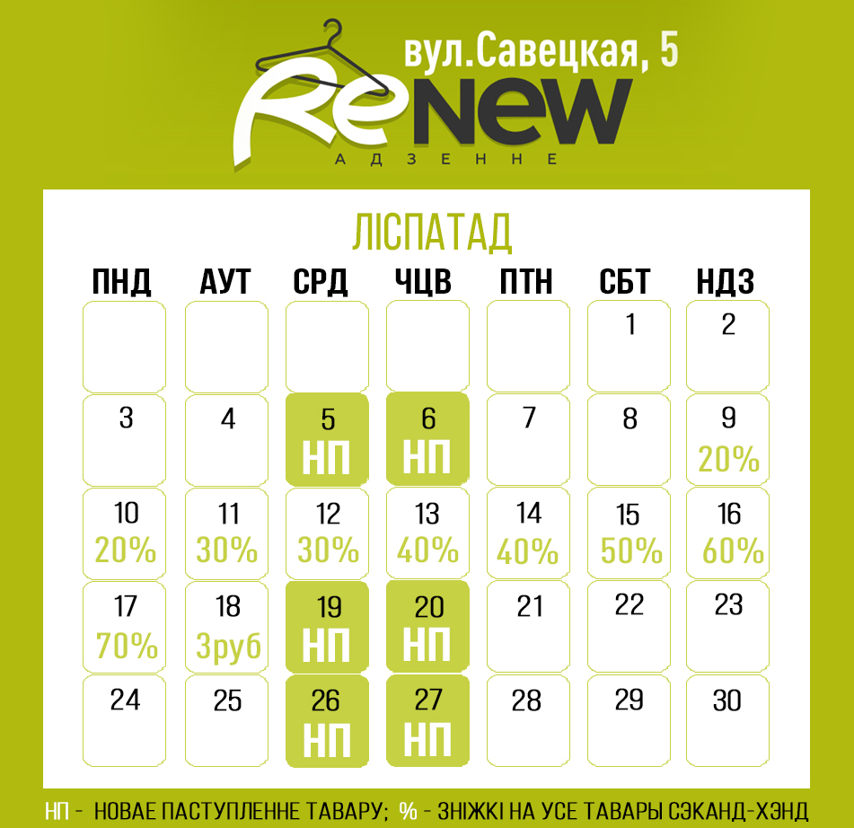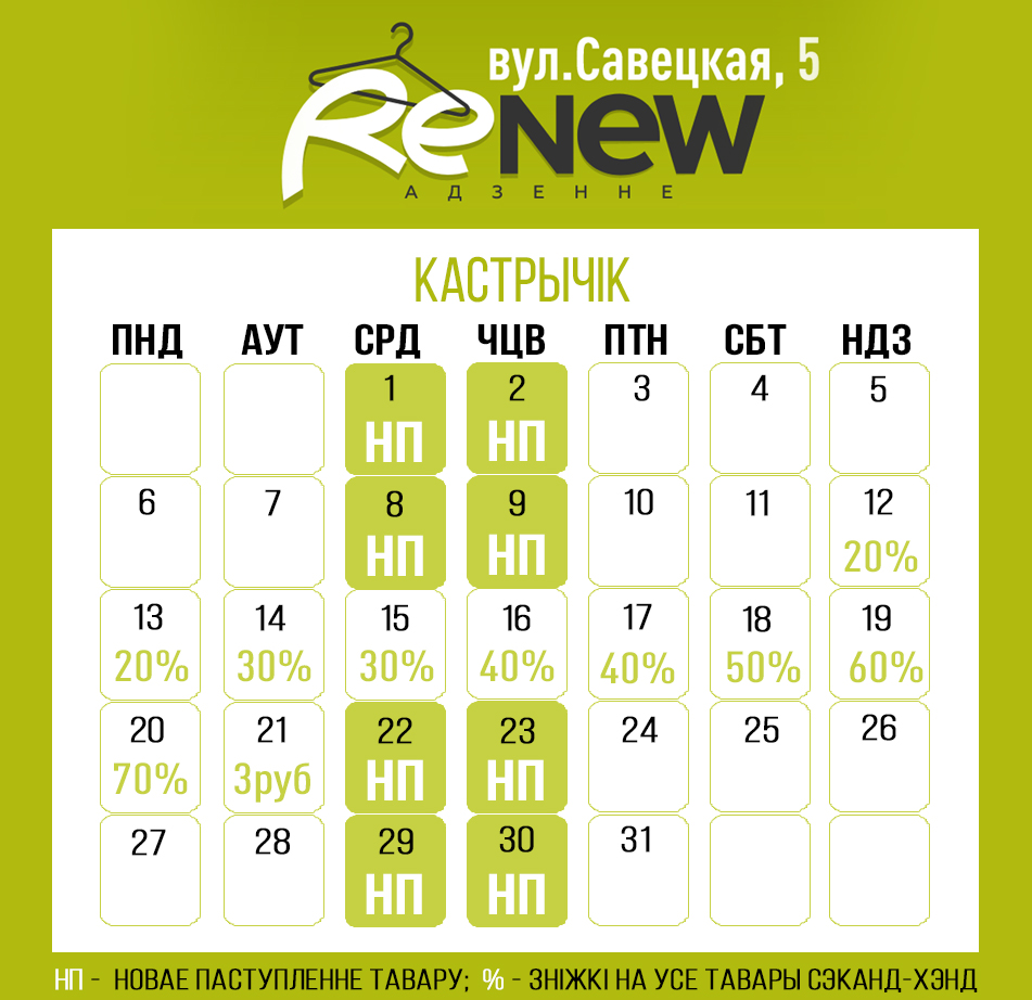 Рэнавацыя адзення, рэнавацыя стылю, рэнавацыя моды. Гэта новы фармат крам сэканд-хэнд, якія даюць вопратцы другое жыццё, другое дыханне. Тэндэнцыі 2023 года, гэта свядомае спажыванне, захаванне экалогіі і эканомія рэсурсаў. Такія магазіны можна сустрэць у цэнтры многіх сталіц Еўропы. У назве «ReNew» прыхаваная сама ідэя сучаснага падыходу да тавараў былых ва ўжыванні. "Re" - гэта рэнавацыя, абнаўленне чагосьці старога ў нешта новае - "New".
